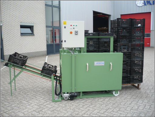 The machine is suited to stack, 2 stacks of 60x40cm at a time and palletizes these on a 80x60cm pallet. (de-stacking optional)